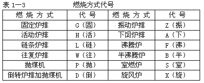 - 第二段用一個(gè)漢語(yǔ)拼音字母代表燃燒方式(廢熱鍋爐無(wú)燃燒方式代號)見(jiàn)表1—3;